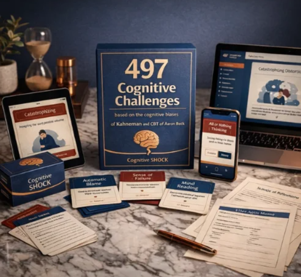Con 497 Confrontaciones Mentales descubrirás cómo observar y cuestionar los pensamientos automáticos que influyen en tus decisiones y en tu forma de interpretar las situaciones cotidianas. Inspirado en los sesgos cognitivos estudiados por Daniel Kahneman y en los principios de la Terapia Cognitivo-Conductual de Aaron Beck, este método te ayuda a analizar tus patrones mentales, desarrollar mayor claridad y entrenar una forma de pensar más consciente y equilibrada en la vida diaria.